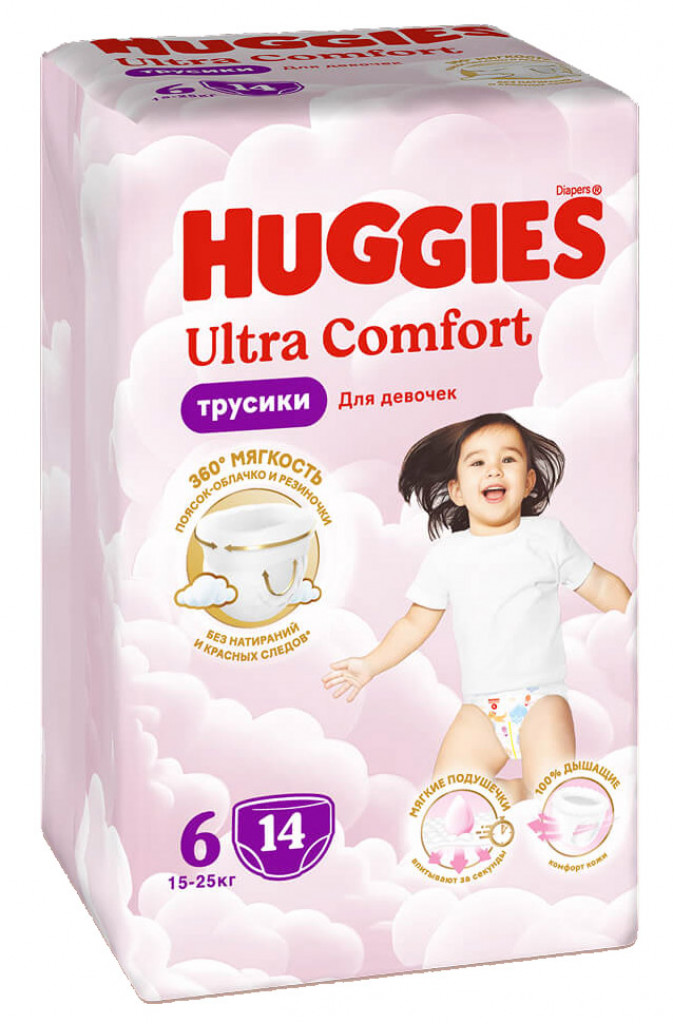 Трусики Huggies® Ultra Comfort для девочек 6 размер (15-25 кг) 14 шт.