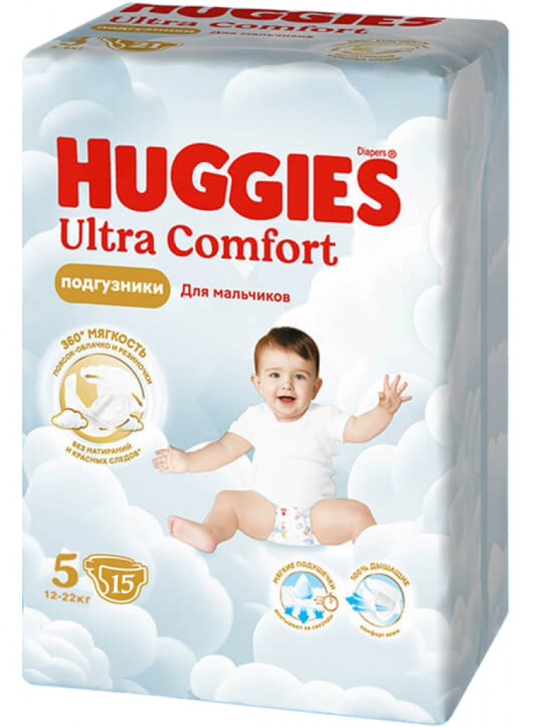 Подгузники Huggies Ultra Comfort 5 мальчикам (12-22 кг) 15 шт.