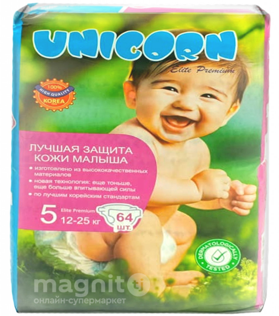 Подгузники Unicorn Elite Premium™ 5 размер (12-25 кг) 64 шт.