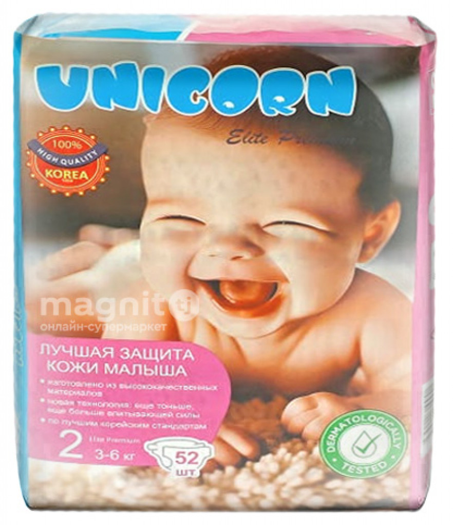 Подгузники Unicorn Elite Premium™ 2 размер (3-6 кг) 52 шт.