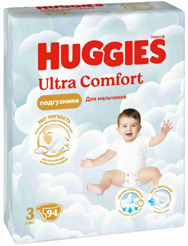 Подгузники Huggies® Ultra Comfort 3 мальчикам (5-9 кг) 94 шт.