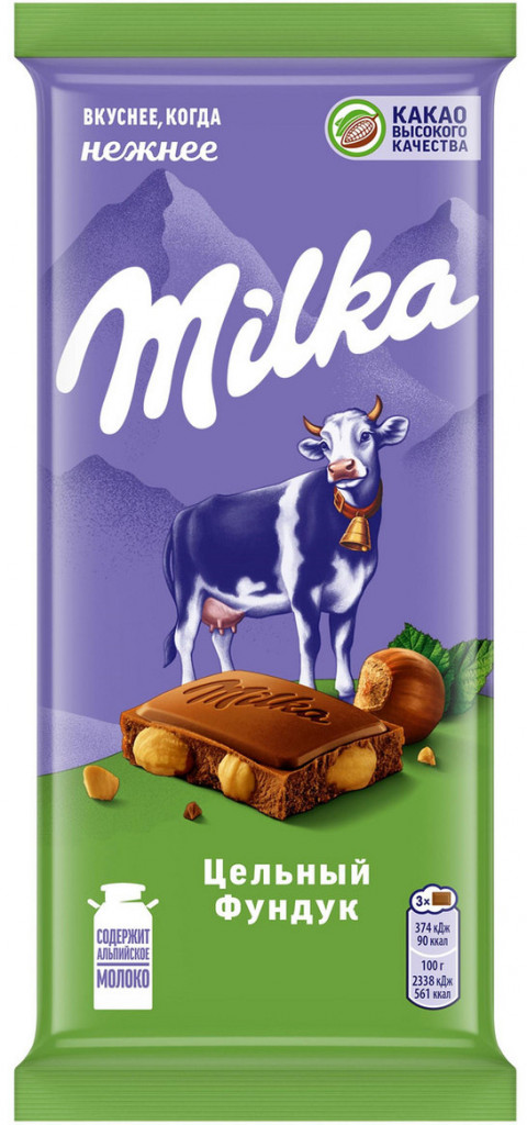 Сочетание молочного шоколада и цельного фундука - это восхитительный дуэт, вкус которого вряд ли кого оставит равнодушным. Milka – нежность внутри!